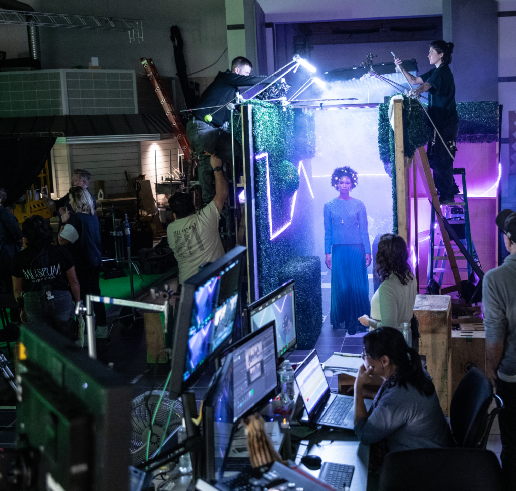 Shirley Paden’s Kingdoms Project is an ambitious XR media fashion experience thatblends couture with cutting-edge technology. This immersive fantasy world highlightsintricate hand-knit garments on live actors, telling astory of identity, craftsmanship, andinnovation through a surreal narrative.